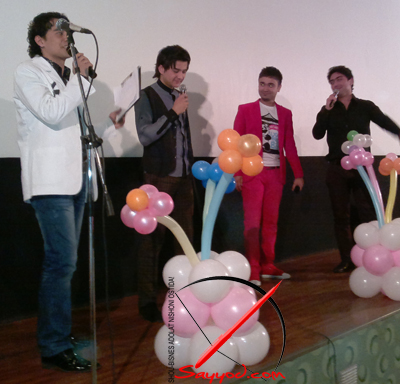 Ундан кейин бошловчилар сахнага Sayyod.com сайтида тақдимот учун чиптага лойиқ топилган форум аъзоларини таклиф қилди ва Шохруххон уларга махсус совғалар тақдим қилди.